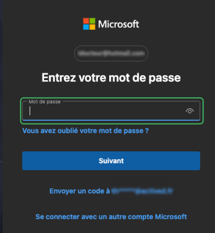 6 - Saisi le mot de passe , cliquer sur "suivant":