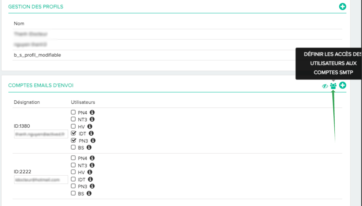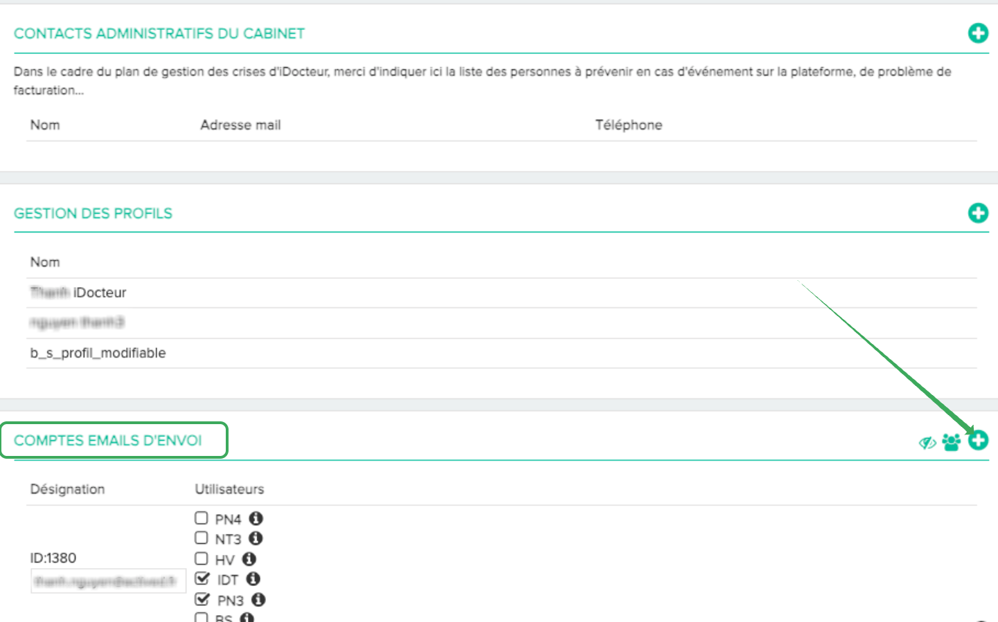 2 - Dans la rubrique "Comptes emails d'envoi", cliquer sur le "+"