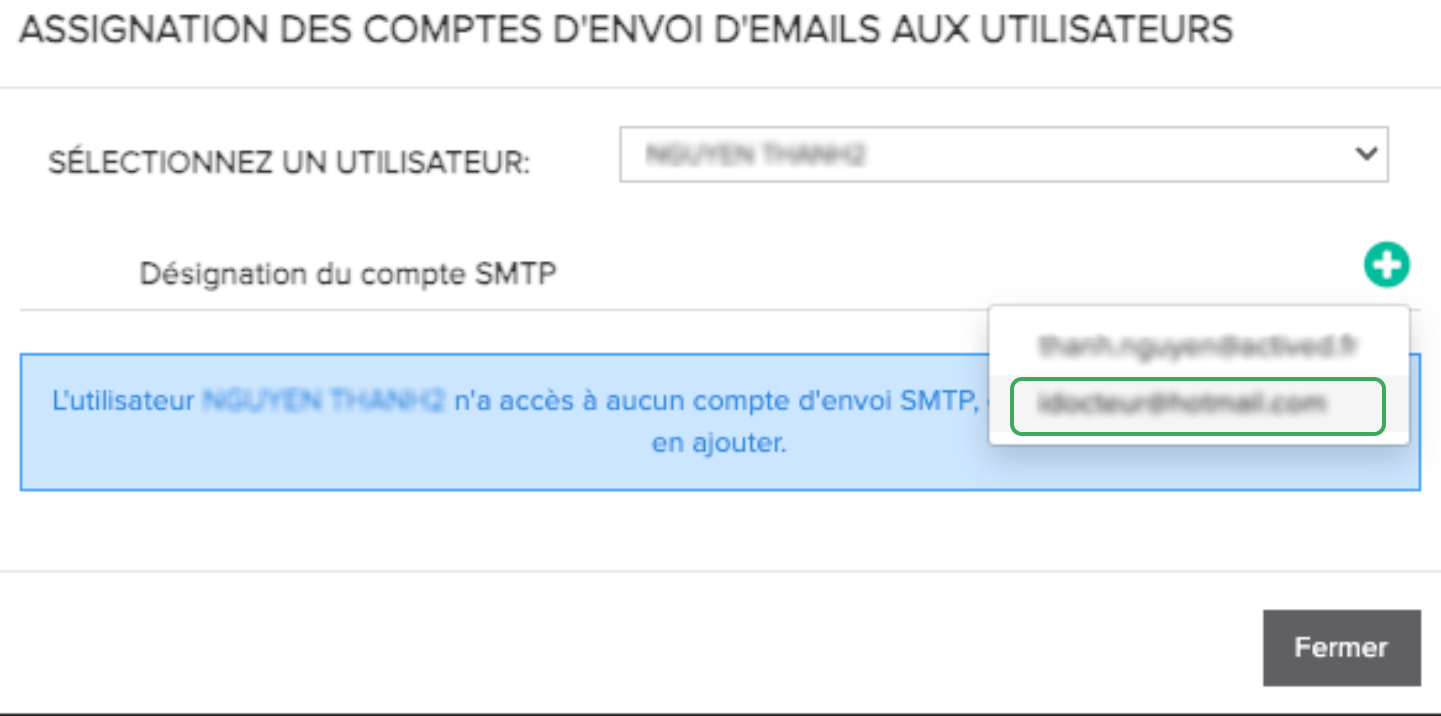8 - Cliquer sur le "+" puis sélectionner l'adresse mail expéditeur: