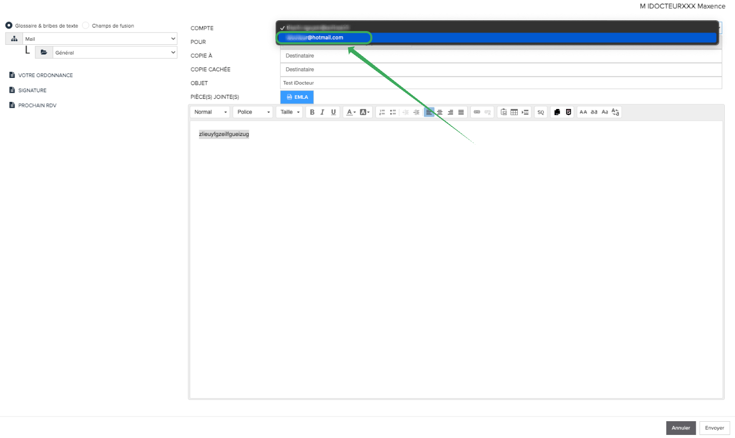 Envoi mail avec PJ via iDocteur avec adresse mail Hotmail, Outlook